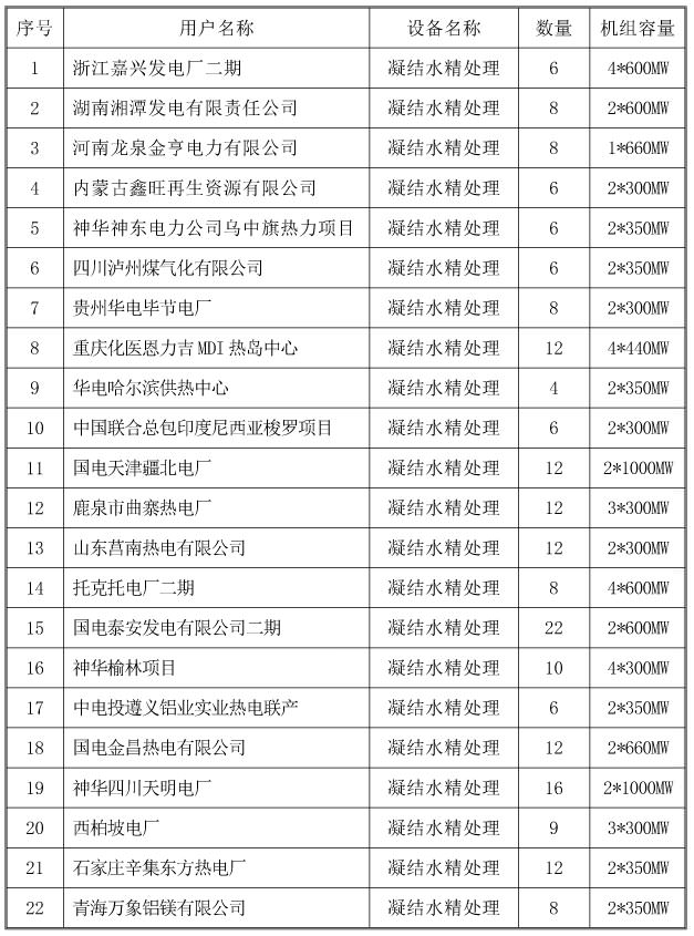 凝結(jié)水精處理業(yè)績